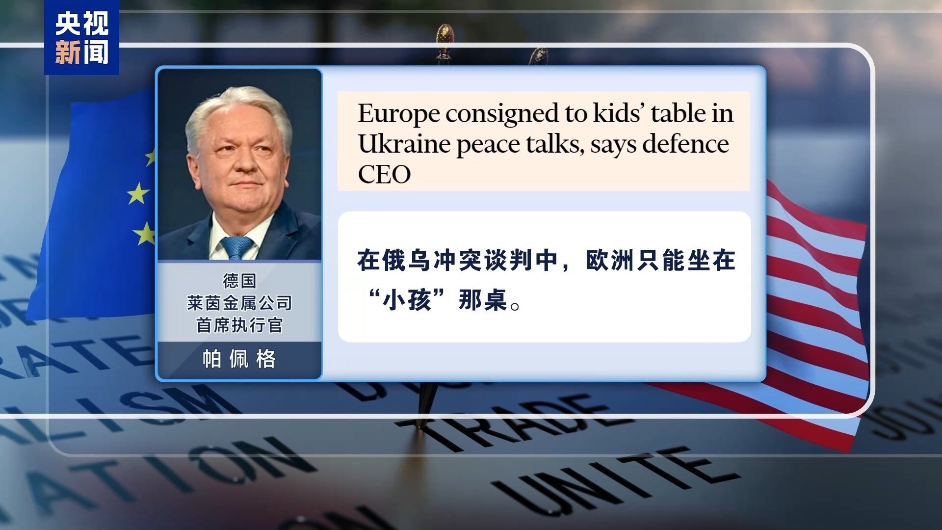 德国军工企业莱茵金属公司首席执行官帕佩格评论道,在俄乌冲突谈判中,欧洲只能坐在“小孩”那桌。帕佩格说:“如果父母在吃晚餐,小孩就得坐另一张桌子。美国正与俄罗斯谈判,而没有一个欧洲人坐在桌边。很明显,欧洲人就是那个‘小孩’。”